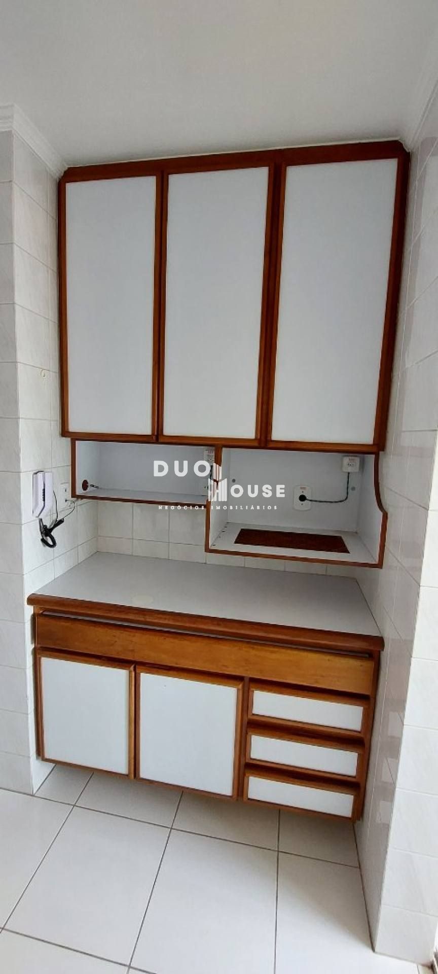 A cozinha e a área de serviço são espaçosas e bem distribuídas, com armários planejados e infraestrutura pronta para gás encanado. O apartamento possui ainda persianas instaladas nos quartos e sala, além de pontos para TV, internet e telefone em vários cômodos.
